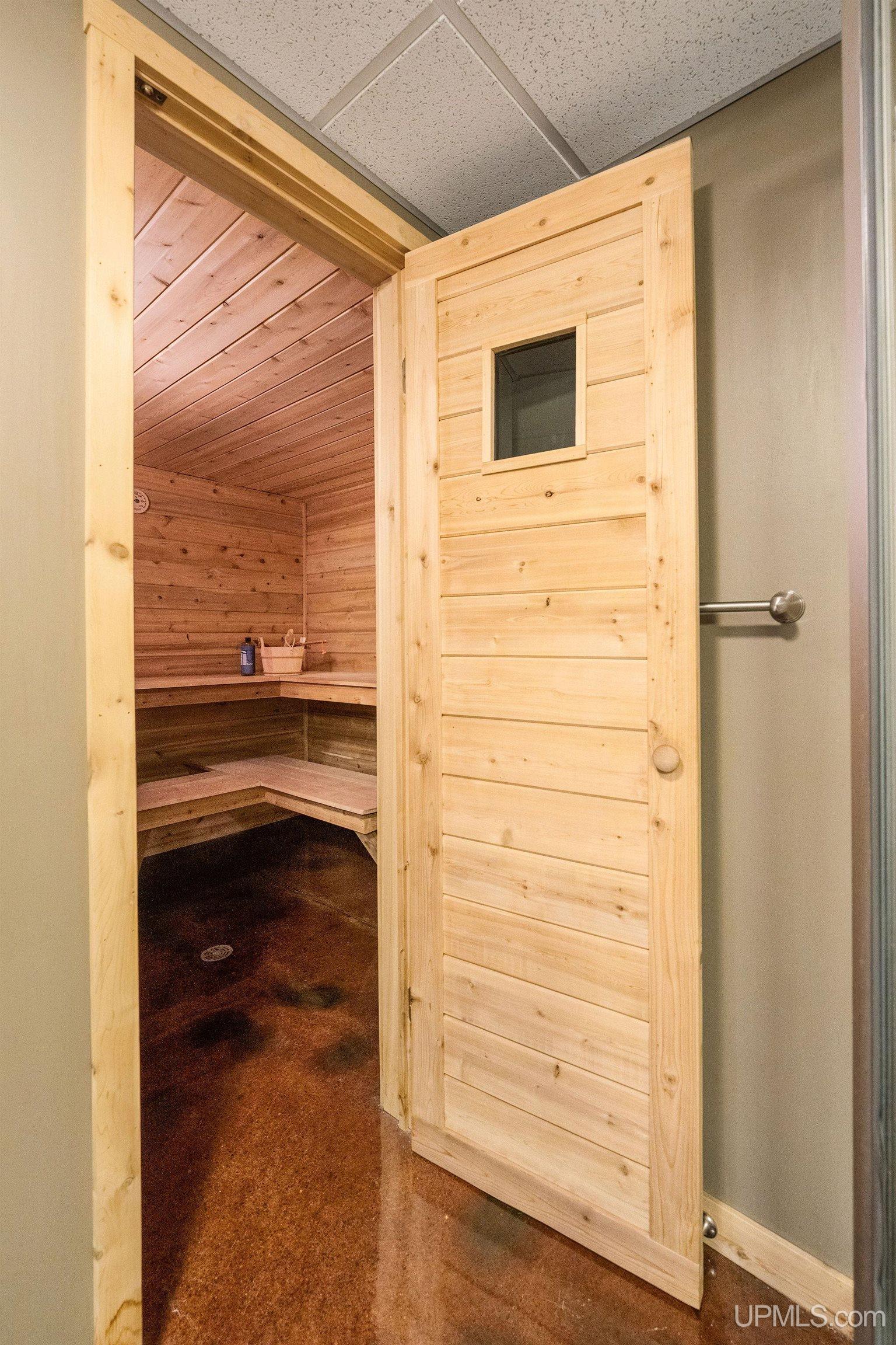 This wonderful home is located on a quiet cul-de-sac in Marquette’s desirable Granite Pointe subdivision. The spacious 5-bedroom 4-bathroom home includes a primary suite, and one bedroom that is currently used as an office on the main floor. The kitchen, dining room, entry and office areas feature warm toned solid Brazilian Tigerwood flooring. Loaded with natural light, the kitchen has beautiful cabinetry and a large island, stainless appliances and access to the back deck overlooking the very private and partly wooded back yard. A natural gas insert fireplace with granite surround in the living room adds warmth and is a wonderful gathering space. The main floor laundry and large half bath near the garage access door are convenient as well. The two-car attached garage is well lit, finished and insulated and could be heated quite easily. It is also extra deep and accommodates additional workshop space. Upstairs, this home is a true “four-square” with four spacious bedrooms, a main full bathroom, and a recently updated primary bath with custom tiled walk-in shower. In the beautifully finished lower level is a family room with walk out patio to the back yard, a wet bar kitchenette area for entertaining, and an awesome cedar sauna and three-quarter bath with custom epoxy flooring. The basement workshop is currently used by the owners as a ski waxing room and could have many other uses. Newer forced air gas furnace in 2021 along with central air for the warm days. Very reasonable gas bills for a home this size! The home is in an HOA that is only $60 annually and allows access to the neighborhood trails on the property that give further access to the NTN trail network and South Trails bike and hiking systems. Close to all Marquette has to offer and in a wonderful neighborhood, this home has many great features. Call for a showing today!